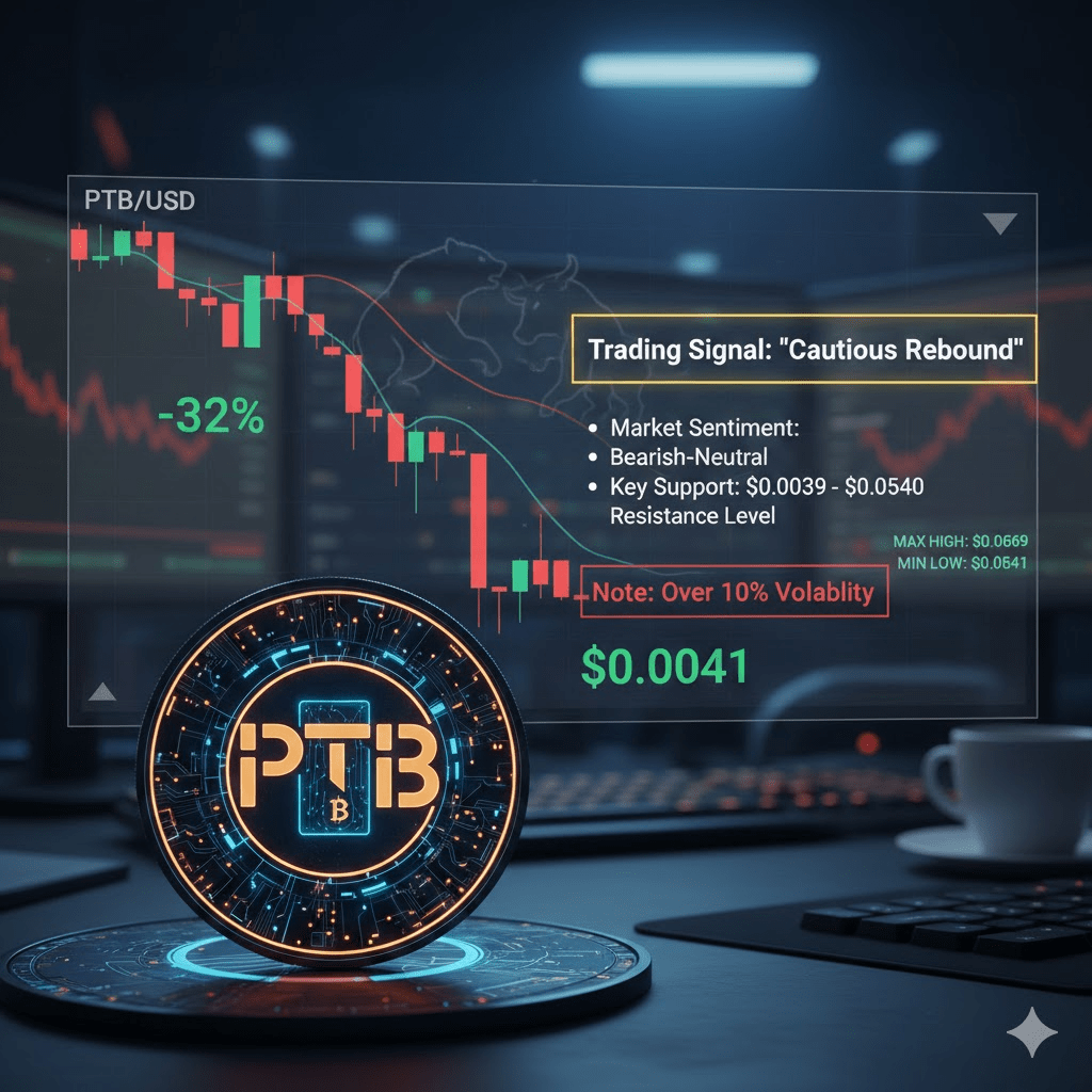 今天,PTB 的最高價格爲 $0.0069,最低價格爲 $0.0041。該幣當前交易約在 $0.0041 旁邊,反映出大約 32% 的顯著 24 小時下降。這一急劇修正是在 Bitget 和 KuCoin 等主要交易所進行強烈活動後發生的。