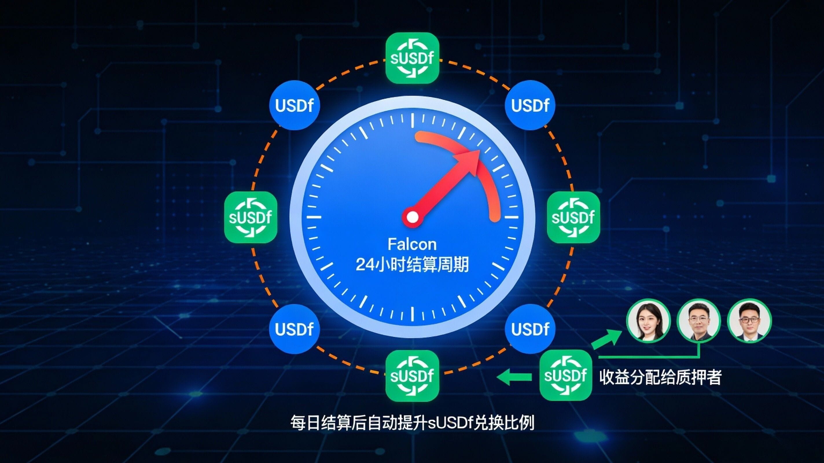 問題在於,這種“漲在換算率裏”的收益,天然會製造體感誤差。你盯着餘額,當然看不出變化;你盯着短期 APY,更容易把“沒更新”“沒結算”“我是不是錯過了”混成一團。官方 Docs 的說法其實很清楚:Falcon 會在每一個 24 小時週期結束時,先把這段時間產生的總收益算出來,再按規則分配給 USDf 的質押者,然後把結果反映到 sUSDf→USDf 的比例上。也就是說,你不是在等“秒到利息”,你是在等“週期結算後的比例更新”。當你把這個節奏理解成“每天結一次賬”,你就不會把幾小時內看不出變化當成異常。