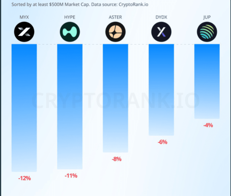 永久 DEX (Perp DEX) 代幣的韌性終於崩潰了。在早期市場下跌期間表現出顯著強度之後,這個領域現在已成爲表現最弱的之一,僅次於 meme coin 狂潮的損失。