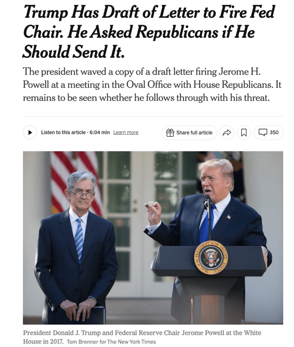 ● 歷史上總統與美聯儲主席之間的政策分歧並不罕見,但特朗普的做法已超越以往界限。7月中旬,有報道稱特朗普已起草解僱美聯儲主席鮑威爾的信件。