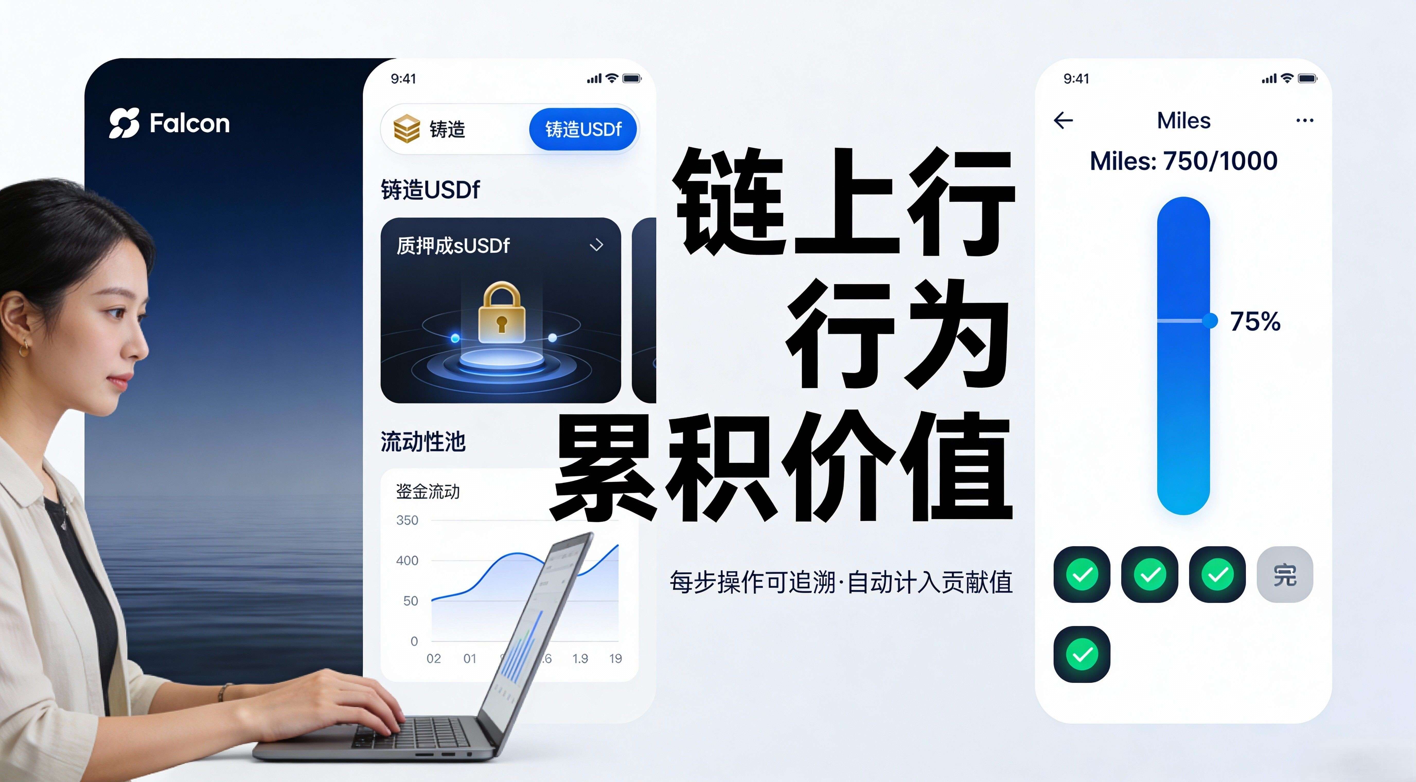 阿祖見過太多人蔘加活動的方式像在賭運氣:今天轉發一條,明天跟風喊一句,等到月底發現榜單沒自己、獎勵也沒自己,然後開始懷疑“是不是內幕”。但 Yap2Fly 這種玩法恰恰相反,它把規則寫得非常明白:你能不能拿到獎勵,取決於兩件可被複核的東西——你在 X 上產出的“Mindshare”(由 Kaito 的引擎衡量內容的原創性、互動質量與真實傳播),以及你在 Falcon 產品裏的真實鏈上使用行爲(對應 Miles、徽章、任務進度)。這不是“發帖等空投”,更像“按規矩交作業”。