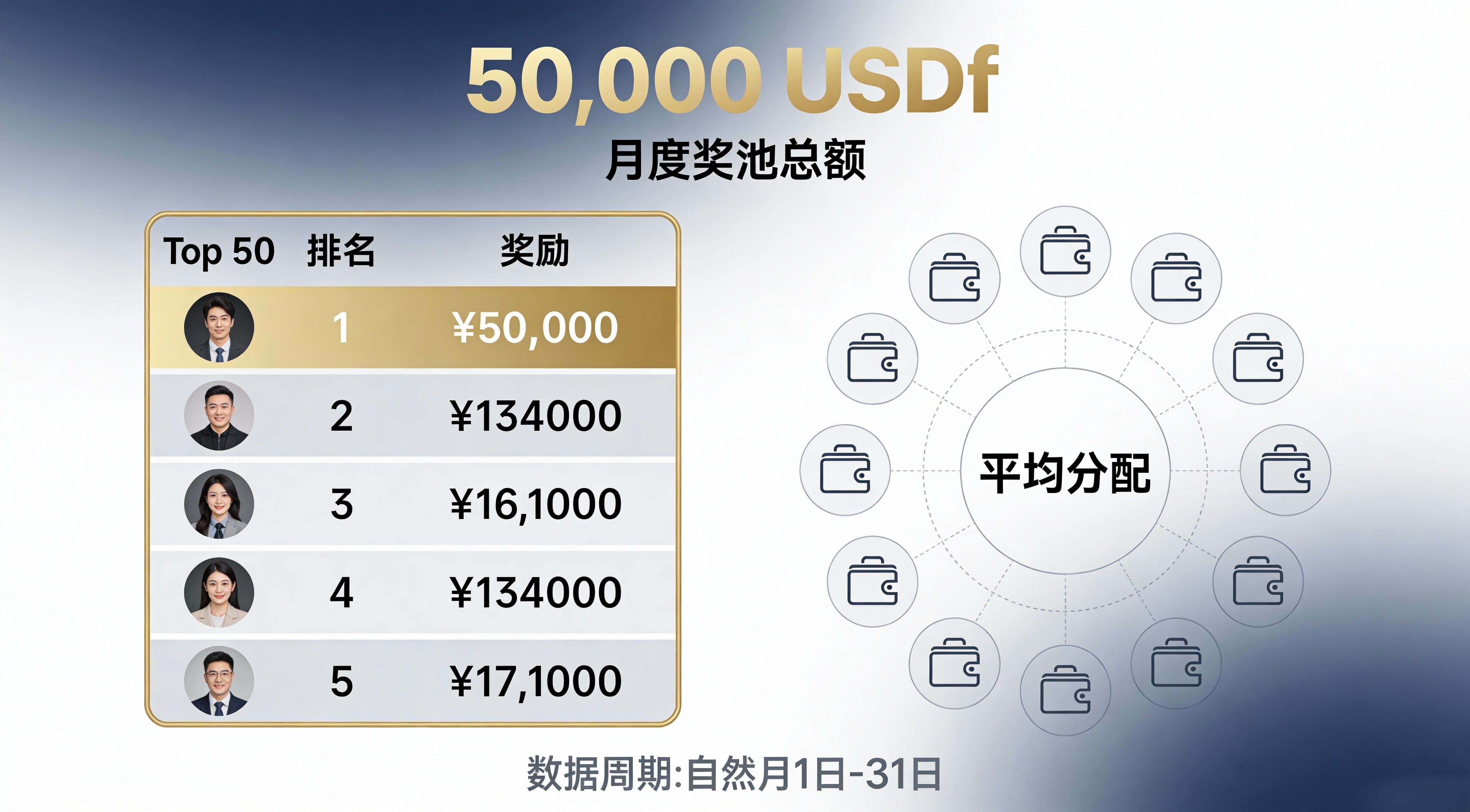 再說大家最關心的“每月 50,000 USDf 獎池”,這裏幾乎沒有腦補空間:文檔寫明每個月都有 50,000 USDf 的月度獎池,按當月榜單 Top 50 發放,並且是平均分給每個錢包;月底會在 UTC 時間當月最後一天 23:59:59 做快照,快照後就可以領取,但領取窗口只有 30 天。 你看到這段就該明白,所謂“無效參與”最常見的不是你不夠努力,而是你努力的方式不對:你如果把產出集中在最後兩三天、或者月底前一天才想起來去補操作,很可能已經來不及讓 Mindshare 和 Miles 在榜單上反映出來;你如果拿到了 Top 50 卻沒在 30 天內去 claim,那等於把獎勵親手放回去。