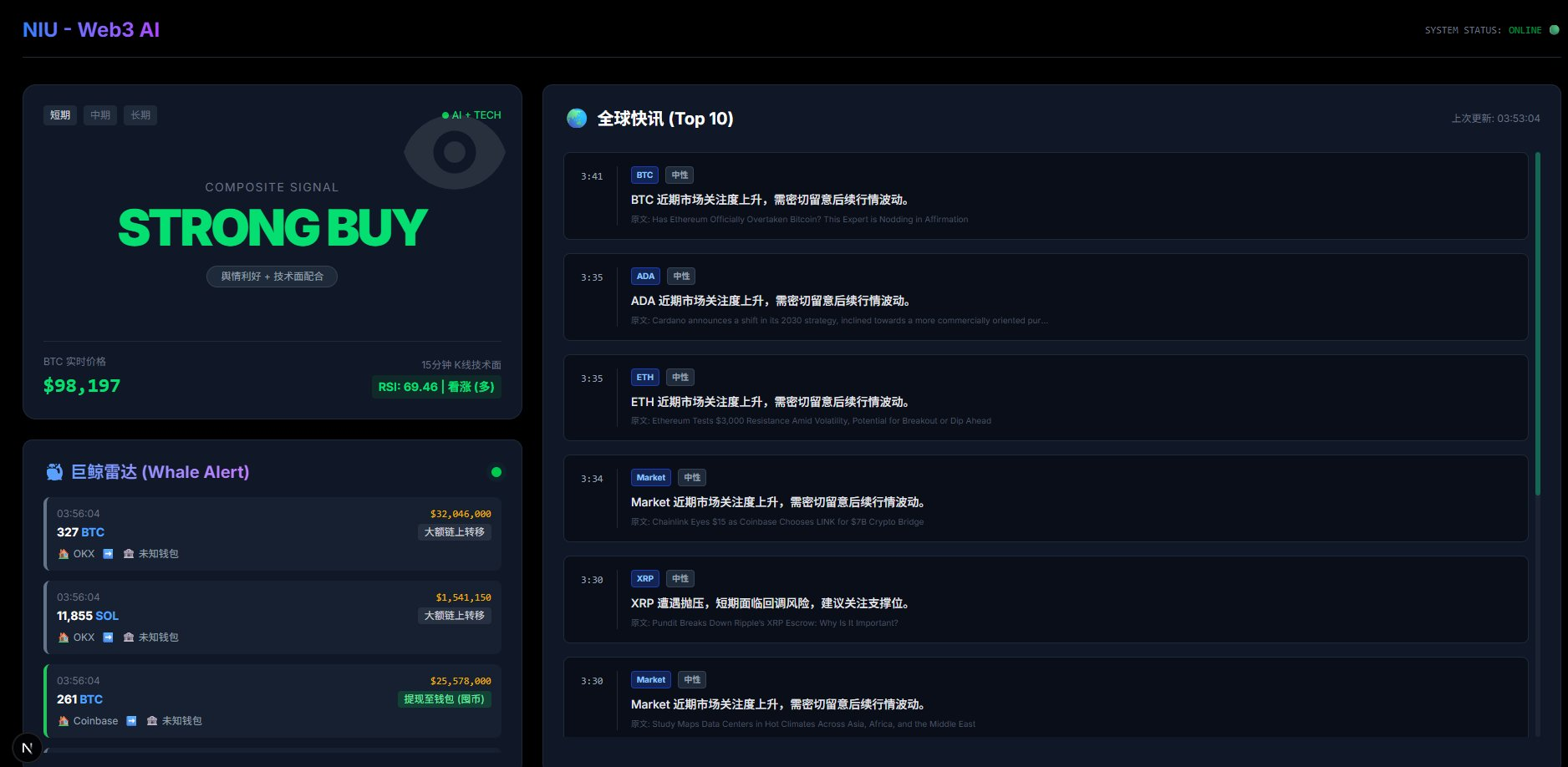 🐳 監控模塊 (已完成):巨鯨雷達(監控資金流向)。
