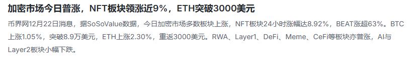 ETH又一次衝上3000美元了!市場一片歡呼,NFT板塊更是領漲近9%,你是不是也心動了?但別急,追高之前,聽南汐給你捋捋——這波漲上去是真突破,還是誘多陷阱?