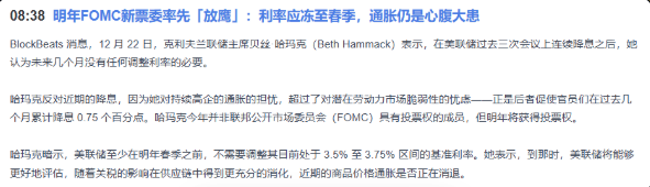 這位明年有投票權的官員,明確反對近期降息,強調通脹第一。這意味着什麼?意味着市場期待的“流動性寬鬆預期”被潑了冷水。