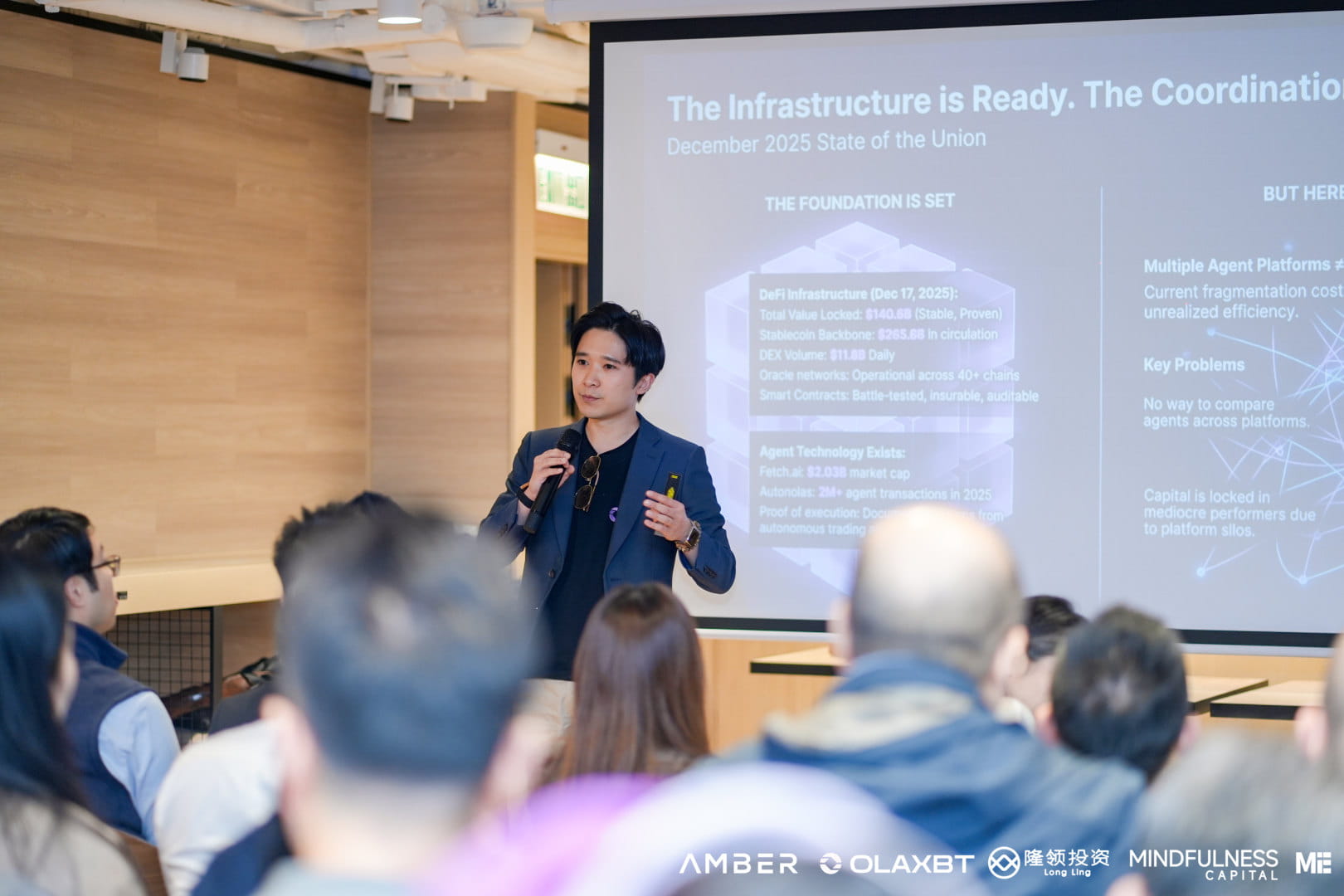 隨後,OLAXBT創始人兼首席執行官Jason Chan帶來了題爲(AI Agent上鍊:OLAXBT眼中的2026機器原生金融)的深度演講。他清晰地描繪了從“人類中心金融”到“算法輔助金融”,最終邁向“機器原生金融”的代際演進路徑。他強調,2026年將成爲一個分水嶺,屆時AI Agent將不再是工具,而是成爲擁有獨立經濟身份、能夠自主決策並參與市場定價的“一等經濟公民”。面對當前行業存在的平臺割裂、資本無法高效配置的“孤島困境”,Jason Chan提出了核心論點:區塊鏈是構建這一未來的唯一可信結算層與身份基礎。它不僅確保了交易與聲譽的不可篡改,更重要的是提供了抗審查、無單一故障點的系統韌性。爲此,OLAXBT的解決方案是構建一個三層“協調層”生態:以鏈上機器身份爲基石,通過統一代幣經濟進行激勵,並整合去中心化算力與防禦性AI,旨在爲機器原生金融時代搭建開放、可信且高效的基礎設施。