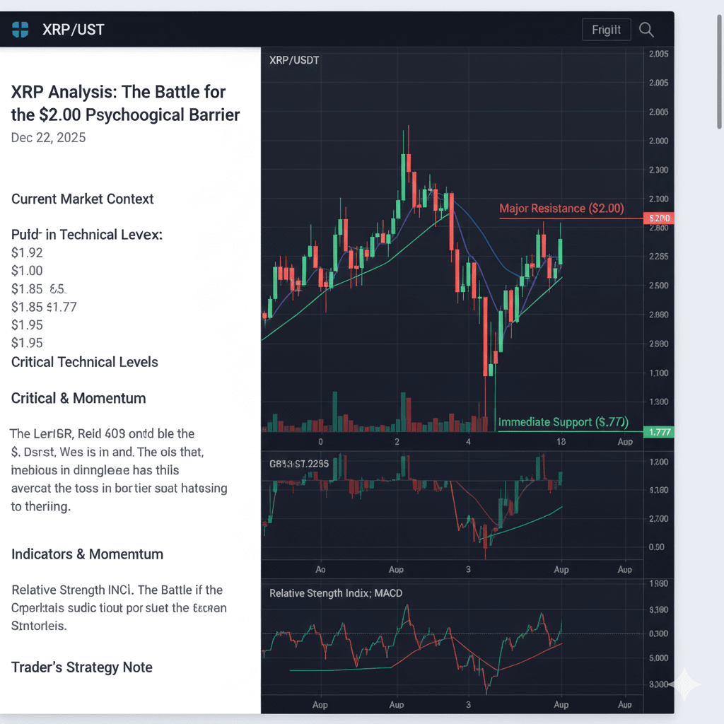 主要阻力 ($1.96 - $2.00):這是最終的「成敗」區域。XRP今天已多次觸及$1.95後回落。需要在$2.00以上實現乾淨的突破和日線收盤,以將偏見從中立轉變為積極看漲,這可能迅速打開通往$2.22的道路。