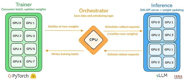 完全異步(True Asynchrony):prime-rl 摒棄傳統 PPO 的同步範式,不等待慢節點、無需批次對齊,使任意數量與性能的 GPU 都能隨時接入,奠定去中心化 RL 的可行性。