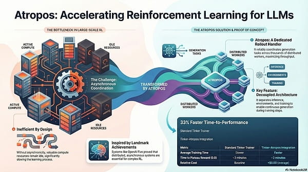 異步推拉(Push–Pull)模式|效率優先:推理側持續生成帶版本標籤的軌跡,訓練側依自身節奏消費,協調器監控版本偏差並觸發權重刷新,最大化設備利用率。