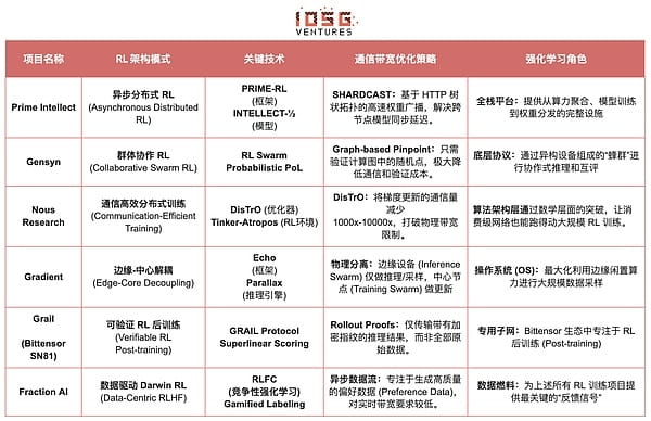 通信稀疏、可並行的 Rollout 外包給全球消費級 GPU,高帶寬的參數更新集中於少量訓練節點,從 Prime Intellect 的異步 Actor–Learner 到 Gradient Echo 的雙羣架構皆如此。