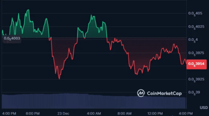PEPE價格在未能守住0.00000405美元附近的關鍵阻力位後,呈現區間震盪,高點和低點不斷降低,表明短期看跌趨勢。從近期高點到0.0000039美元附近的低點,價格下跌了約3%,反映出賣方力量增強。截至發稿時,PEPE交易價格爲0.000003954美元,過去24小時內下跌了1.59%。