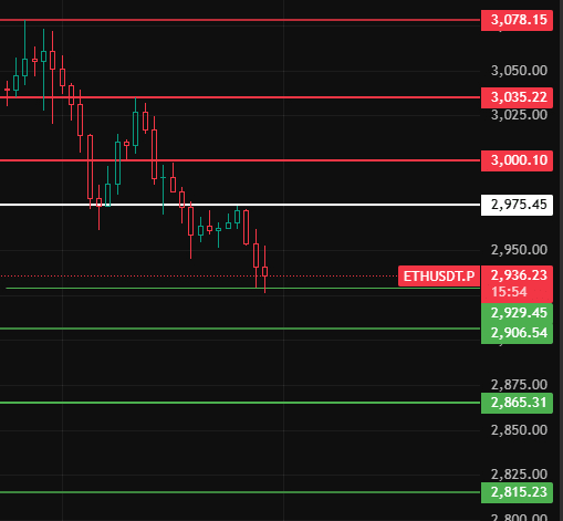 以太夜間留意2975這個位置,只要反彈上不去此位置,那說明反彈沒有力度,繼續下跌下方支撐位留意2930-2905-2865這幾個位置附件!