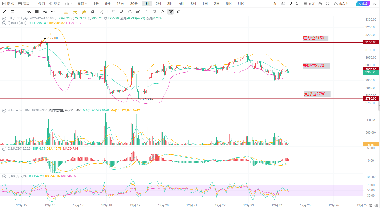 關鍵位:壓力位:3000(整數關口 + 前期高點)支撐位:2900(昨夜低點防線)
