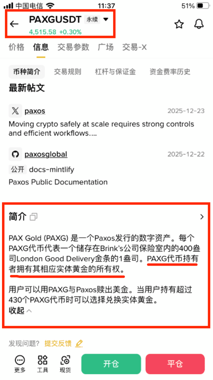 先給小白劃重點:PAXG不是普通山寨幣,而是數字黃金,1枚PAXG嚴格錨定1盎司實物黃金,背後有倫敦金銀市場協會金庫託管,你買1枚 PAXG,就相當於間接持有1盎司真黃金,既能享受黃金的保值屬性,又能像比特幣一樣靈活交易,隨時買隨時賣,比去銀行買金條省了一堆手續費和保管費。