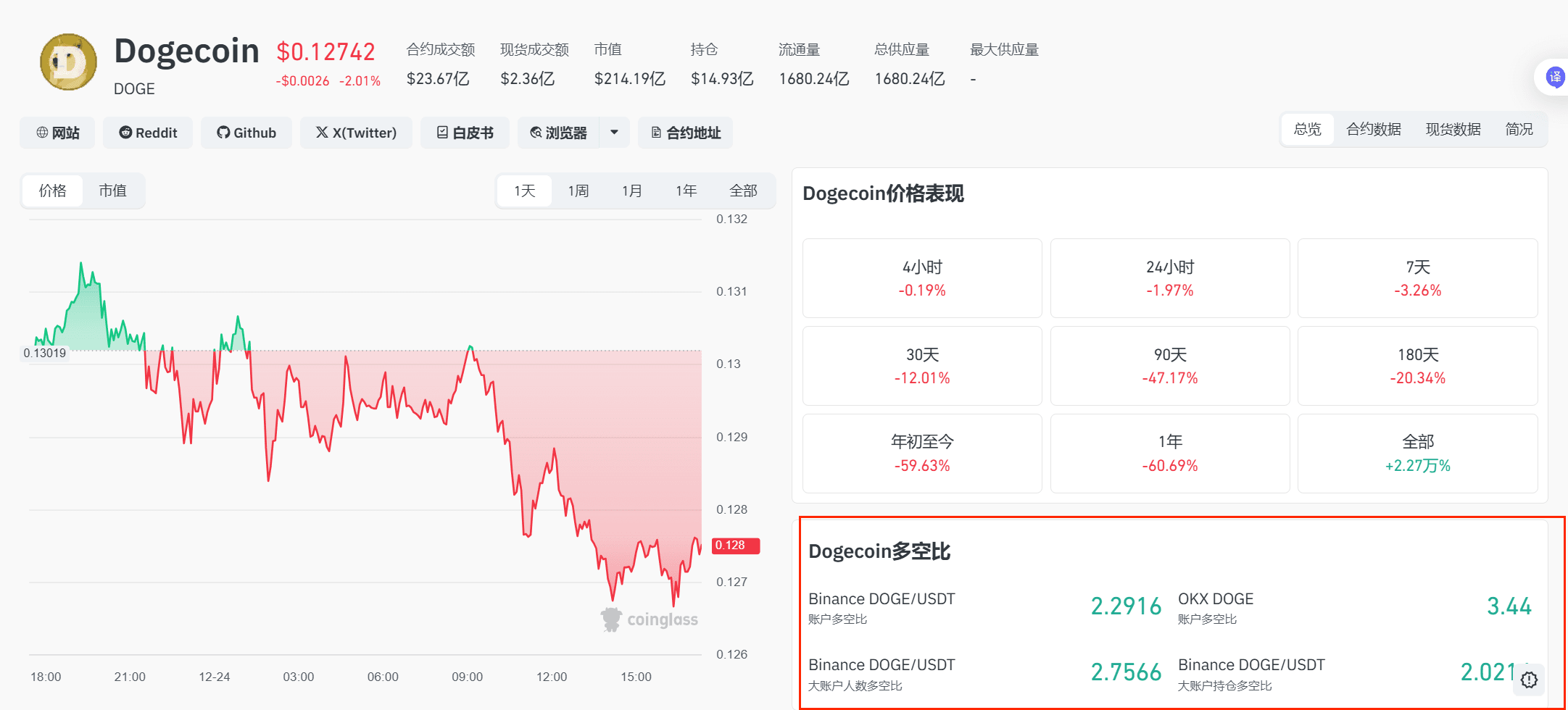 儘管近期沒有馬斯克的直接喊單刺激,但整個Meme板塊受大盤情緒壓制明顯。DOGE作爲老牌Meme幣,往往在下跌行情中表現出更強的“扛跌性”,但一旦跌破關鍵位置,也會引發散戶踩踏。當前市場流動性偏緊,資金更傾向於觀望或流向避險資產,DOGE獨立上漲邏輯暫不具備,走勢仍以聯動大盤、技術驅動爲主。
