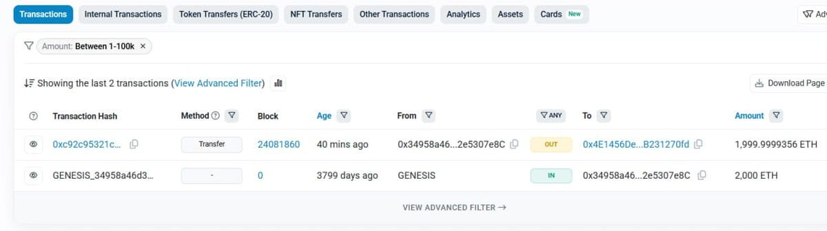 以太坊巨鯨大額轉移根據Lookonchain數據顯示,一個沉睡了10多年的以太坊ICO錢包剛剛轉移了2000個ETH,價值585萬美元。 這筆轉移相當於一筆620美元的投資實現了9435倍的回報,引發市場廣泛關注。