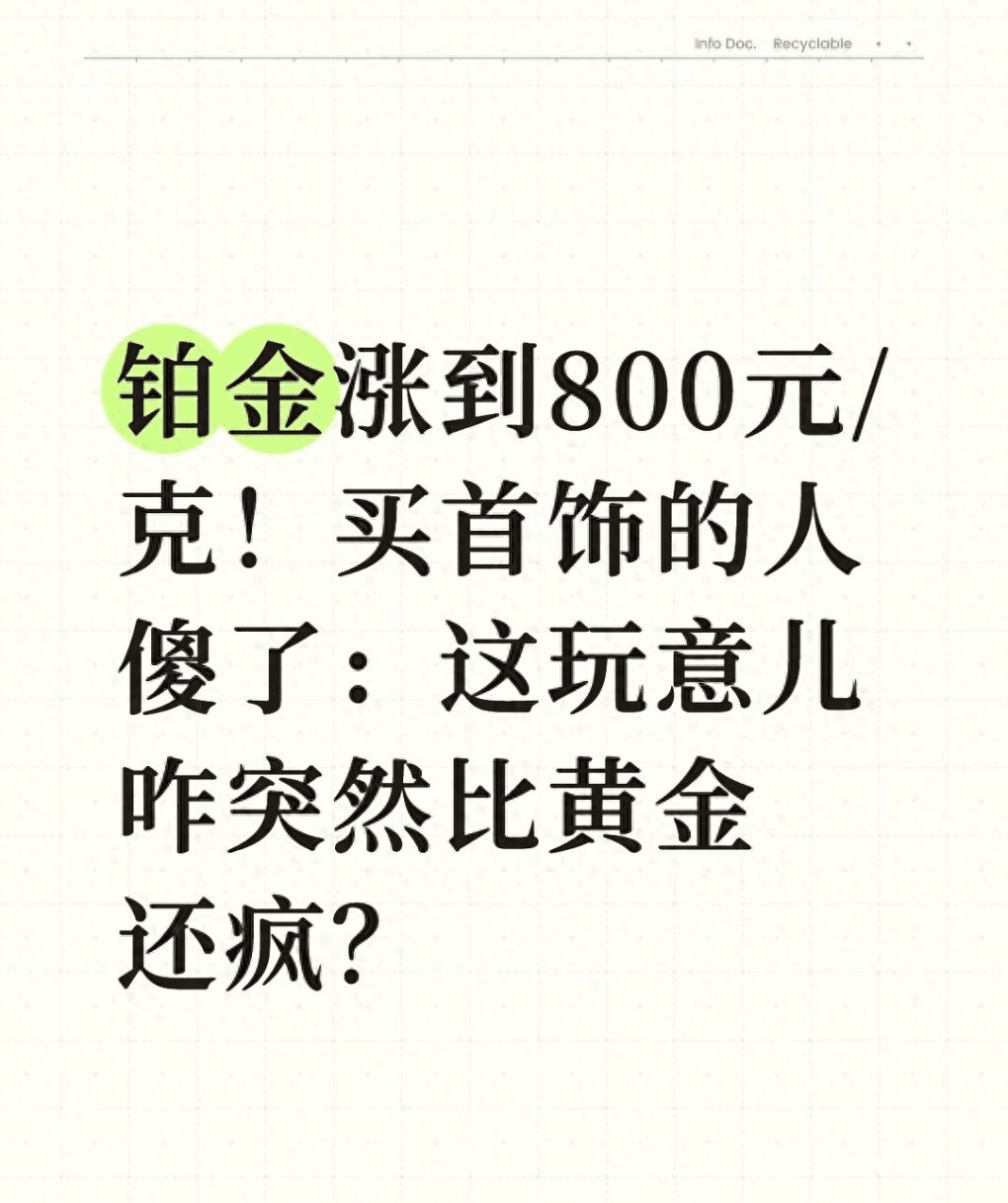 普通人最尷尬。想買婚戒的,看着價格直嘬牙花子——買吧,心疼;不買吧,又怕再漲。想投資的也得掂量,實物鉑金首飾根本不適合炒,工費高、回收折價狠,漲了110%說不定哪天就回調。真想玩,還得走正規渠道,期貨、ETF這些,哪能腦子一熱就衝進金店搬貨?