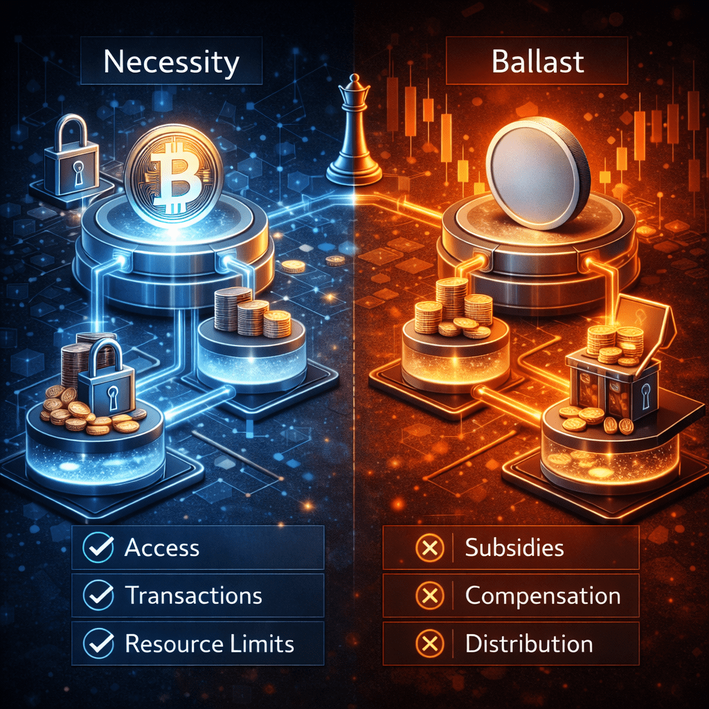 分析的第一層級是必要性。令牌是否是訪問、計算或資源限制的必要元素,或者系統是否可以在沒有其積累的情況下運行。如果資產容易被替代或僅僅是形式上的,其價值仍然是有條件的。