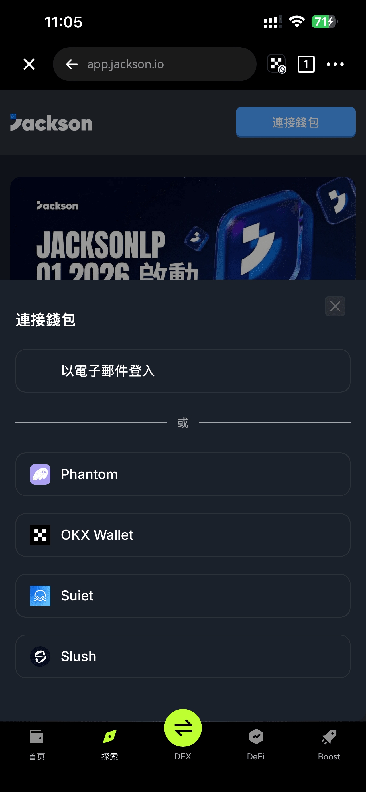 1. 連接錢包:Sui Wallet或OKX 錢包(暫不支持幣安錢包)。