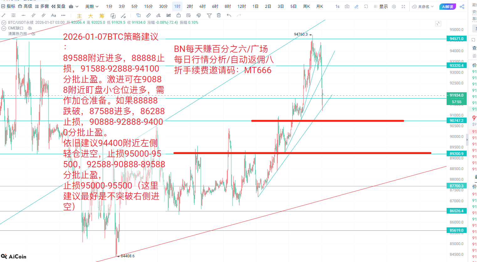 依舊建議94400附近左側輕倉進空,止損95000-95500,92588-90888-89588分批止盈,止損95000-95500(這裏建議最好是不突破右側進空)