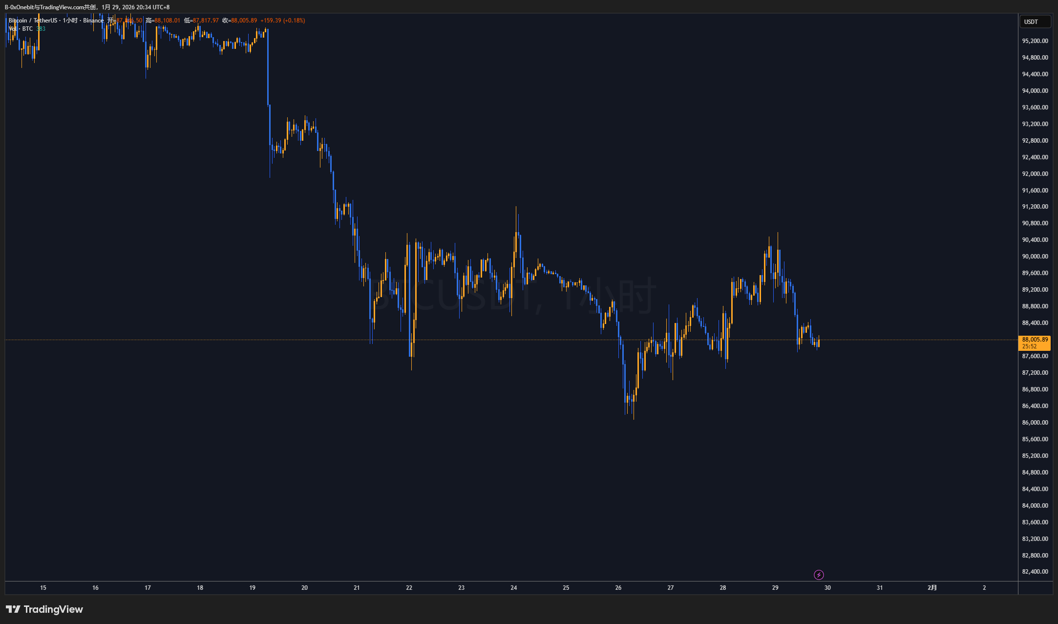 高位15M級別留下個小頭肩. 後續沒再給到反彈回測的機會. 日內持續震盪下行陰跌. 不建議左側徒手接飛刀.
