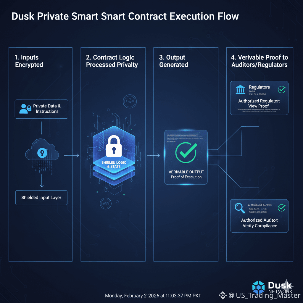 Dusk introduces private smart contracts that execute confidentially. Business logic, conditions, and outcomes are hidden from the public while remaining verifiable. This enables new classes of applications such as private lending, confidential auctions, regulated exchanges, and institutional DeFi.