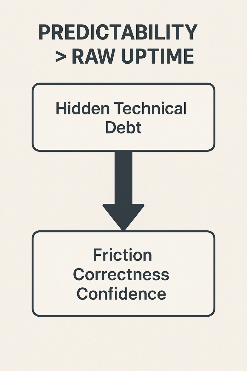 在基礎設施中,可預測性往往勝過正常運行時間。以清晰、可測量的方式失敗的服務更容易緩解。倖存但間歇性“軟”的服務會產生隱性技術債務。