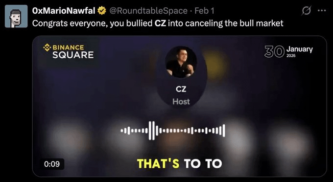 CZ 的回答相當諷刺:如果有權取消市場,肯定也有權重新開啓。但重點是他重申了原話:只是說比之前少了自信,並沒有說市場崩潰或週期反轉。